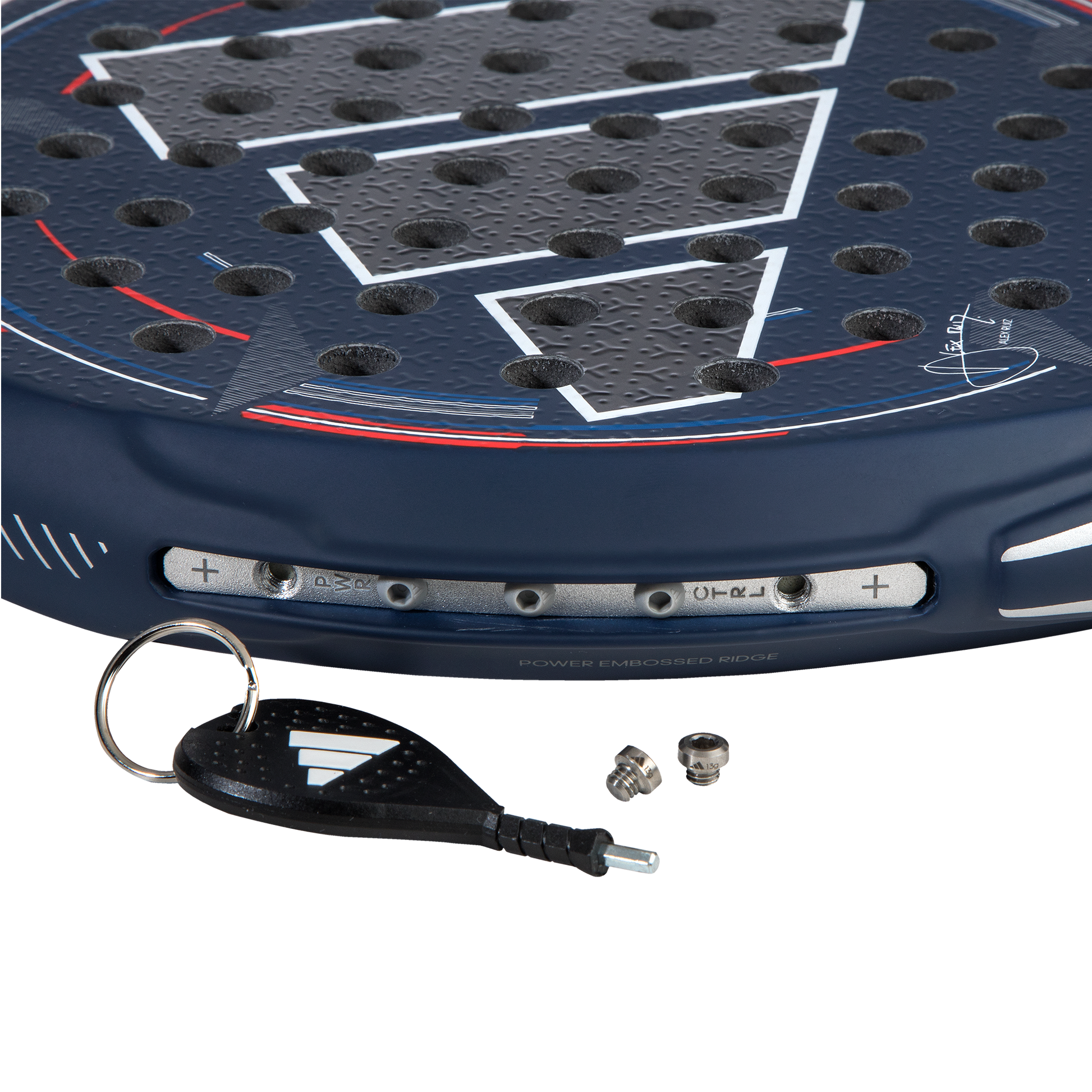 The Adidas Padel Racket Adipower Multiweight CTRL 3.3 LTD for 2024 has a unique mix of power and control. This is the official padel racket from Alex Ruiz in a limited edition. The Adidas racket has a 100% carbon frame and a dual exoskeleton finish over the entire frame. This technology ensures an improved lifespan and stiffness of the racket. The frame has been reinforced and strengthened, which gives the racket a better lifespan, but also a higher power output. The racket is round-shaped which contributes to your control play, a racket with a middle balance. In addition, experience a unique hitting experience with the 18K Aluminized carbon on the racket head, which provides even more control and power. What is unique about the Multiweight is that you can adjust your weight. The racket can be made heavier/lighter by a maximum of 9 grams. The racket head has an extra rough finish with baked-in grains, so that you can give even more effect to the ball and to ensure that the roughness does not wear off. The High Memory EVA in the core of the racket gives a hard touch. Are you all-round? Have you progressed? Then the Adidas Padel Racket Adipower Multiweight CTRL 3.3 is perfect.