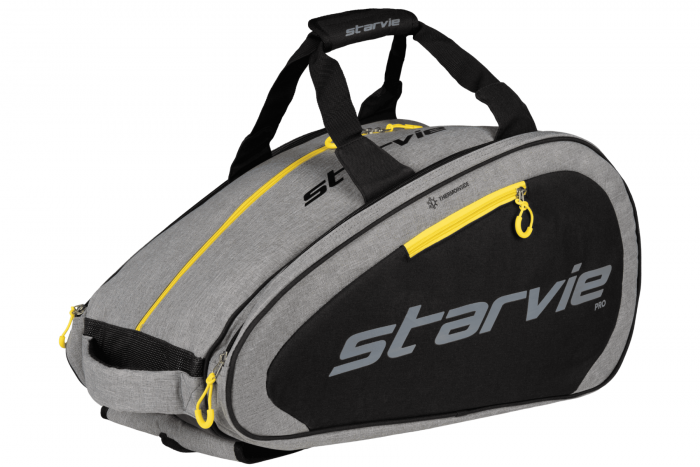 In gray with yellow details, it stands out for its dual Thermotech compartment, keeping your rackets in optimal condition. It also features a ventilated shoe compartment and a side pocket for small accessories, ideal for players who value organization. With a comfortable and durable carrying system, it’s perfect for any player.