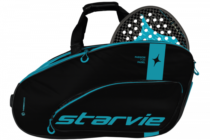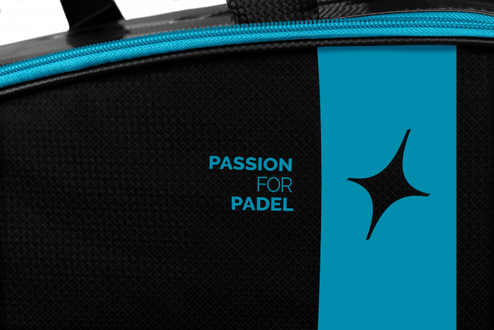 The perfect companion. The Racing Drax Padel Bag combines style and performance. Its black design with blue accents stands out on any court.